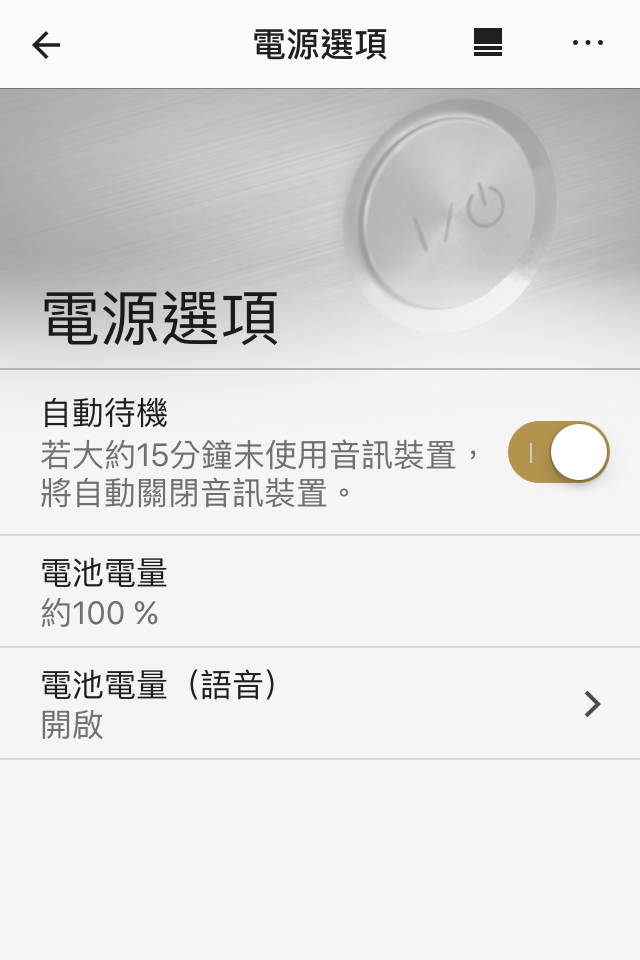 这个App还有一个比较有用的功能就是查看HG1音箱的电量情况。在设定——电源选项里面可以看到HG1内置电池的电量,据说通过蓝牙来播放音乐的话,HG1最多可以支持12小时,而通过网络来播放音乐的话,只能支持8小时,总之不管多少时间,使用一天肯定没有问题。关键是充电也很快,用5V/1.5A的充电头大约3个小时。反正我平时都是连着充电头在用,没有什么影响。