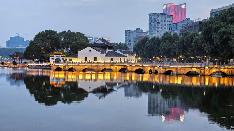 离滨江路的终点不远就是风景秀丽的甘棠湖了,有甘棠湖那就必定有甘棠公园,现在的甘棠公园由于靠近江州府的市中心,所以每逢早晚,都有很多的市民来这里休闲娱乐、健身社交。其实甘棠湖、甘棠公园和军事战争有着密不可分的关系。传说三国时期的周瑜,就是在这里操练水军,以抵抗曹操的入侵,其中甘棠湖北端的烟水亭就是周瑜当时的司令部,只是不知道烟水亭里面有没有放着一架古琴,如果想知道答案,就要付20元的门票。