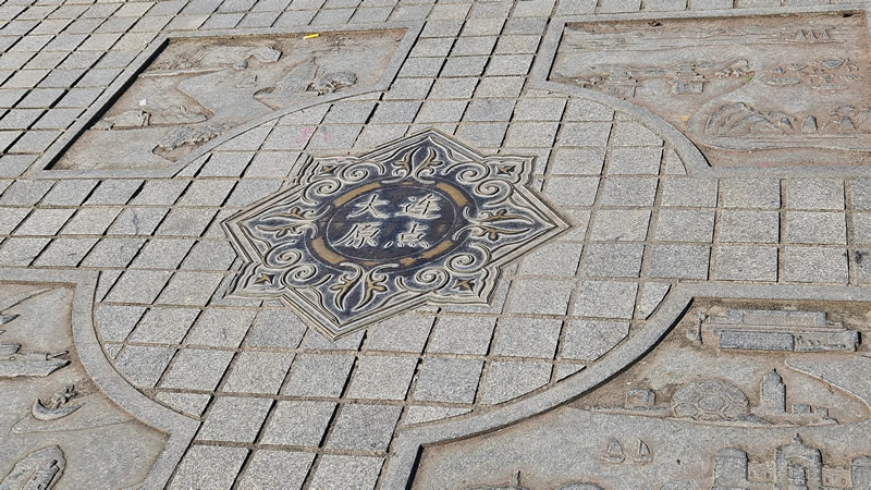 今天上午的最后一个景点,是达里安俄罗斯风情街,这里靠海比较近,已经快要接近昨天的东港音乐喷泉广场了。最早是由俄罗斯人在1898年开始建造,日俄海战之后,日本人全面接管,把这边改名为有日本特色的露西亚町。现在的俄罗斯风情街,除了有些招牌上写的是俄文、卖的商品包括俄罗斯套娃和马迭尔雪糕之外,和其他城市的普通商业街没有什么区别,所以也没有什么好逛的。倒是在街道的尽头,有一处正在修缮的达里安自然博物馆旧址,这座博物馆曾经是俄罗斯的达里尼市政厅,在市政厅前面的街道上,有一处鲜为人知的地标——达里安原点。这里就是达里安市梦开始的地方,通过一百多年的时间,几代人的努力,把达里安从一条短短的街道、一个小鱼港,发展到一座忙碌的港口,北方的明珠,见证了沧海桑田的变迁。