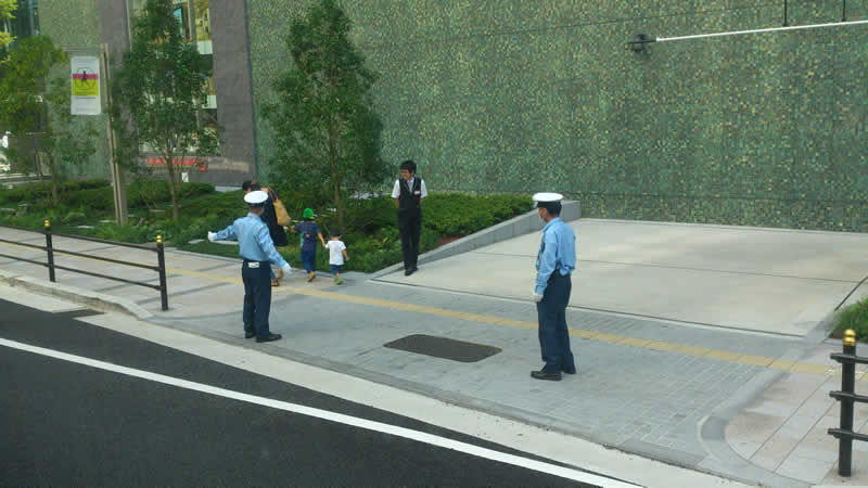 这次考察期间碰到不少学校组织学生秋游,日本的学生全部穿校服的,女生穿我们熟悉的水手服,白色的上装,配黑色的领巾,下穿黑色的百褶裙和及膝的袜子,显得英姿飒爽;男生则是穿较为西化的西服,白衬衣配深色外衣,尤其领子要立起来,看上去精神抖擞。相比之下,我们国家的校服就差得远了,还不如说是运动服更来得贴切。